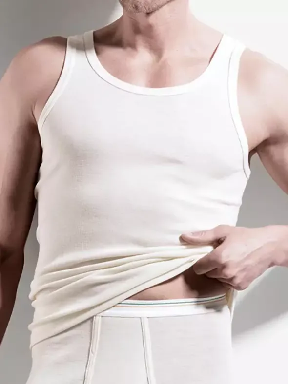 ISA Bodywear – hochwertige Herrenunterwäsche aus der Schweiz – ein klassisches Tank Top mit breiten Trägern, gefertigt aus 100% feinster Schurwolle. Die angenehm leichte Stoffqualität ist sehr anschmiegsam und wirkt wie eine zweite Haut. Die hochwertige Schurwolle mit hohem Feuchtigkeitsspeicher- und Wärmerückhaltevermögen, zeichnet dieses Unterhemd besonders aus. Verwöhnen Sie sich mit diesem Herrenunterhemd das höchsten Ansprüchen gerecht wird.