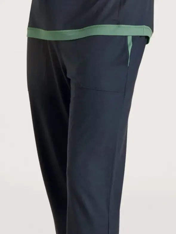 Die Hose mit Bündchen aus der DSW Balancing Serie von CALIDA bietet optimalen Tragekomfort und stilvolle Lässigkeit. Hergestellt aus einem innovativen TENCEL™-SeaCell™-Modal-Mix, ist sie besonders weich, temperaturausgleichend und feuchtigkeitsregulierend. Weiche Bündchen an den Beinabschlüssen und praktische Seitentaschen machen diese Hose zum perfekten Begleiter für entspannte Stunden.