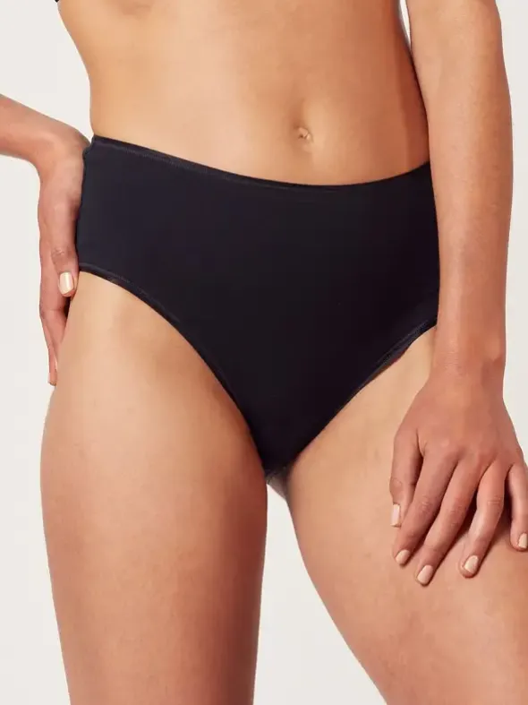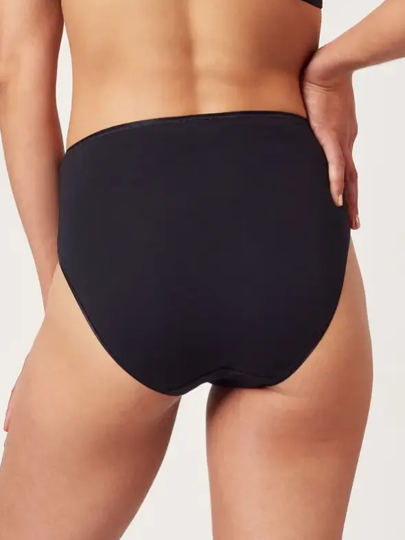 Dieser hoch geschnittene High-Waist-Slip hält die Hüfte an genau den richtigen Stellen warm und zeigt sich auch optisch von seiner besten Seite. Zum Glück kommt der Maxi-Slip aus weicher Bio-Baumwolle im praktischen 2er-Pack, so hat frau immer die passende Unterwäsche und höchsten Komfort parat.