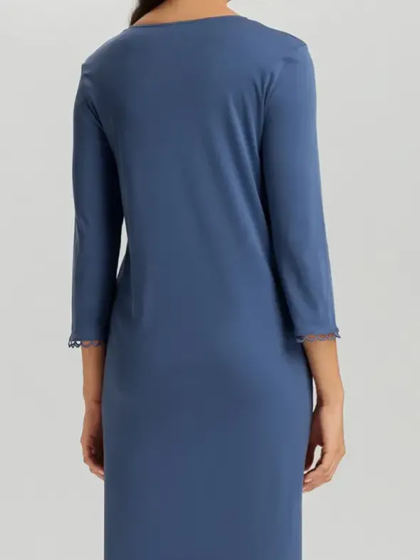 Das Nachthemd 3/4 Arm – Anouk aus 100 % merzerisierter Baumwolle verführt mit seiner unvergleichlichen Weichheit und exzellenten Hautfreundlichkeit. Der V-Ausschnitt und die eleganten, dezent dekorierten Bogenkanten an den Ärmeln, die exklusiv in Vorarlberg für HANRO kreiert wurden, verleihen diesem Nachthemd eine subtile Raffinesse. Das weiche Baumwollmaterial wirkt atmungsaktiv und pflegeleicht und sorgt gleichzeitig für eine zuverlässige Feuchtigkeitsregulation während der Nacht. Die feinen Stickereien an den Ärmeln setzen einen modernen Akzent, der das elegante Design des Nachthemds perfekt abrundet. Mit diesem hochwertigen Nachthemd genießen Sie höchsten Komfort und einen luxuriösen Schlaf.