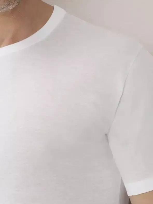 Zimmerli Herren T-Shirt Kurzarm aus der Serie 222 Business Class – ein Luxus Kurzarmshirt mit Rundhals der Extraklasse, wahlweise in weiß oder schwarz, gefertigt in Feinripp aus feinster Baumwolle in Swiss Cotton Qualität, gezwirnt und mercerisiert. Die Business Class Unterwäsche ist elastisch und formstabil. Flache Nähte, ein anliegender Rundhalsausschnitt und sehr angenehme Abschlussbündchen sorgen für erstklassigen Tragekomfort. Schweizer Handarbeit – akkurat verarbeitet. Verwöhnen Sie sich mit diesem Herrenunterhemd, das höchsten Ansprüchen gerecht wird.