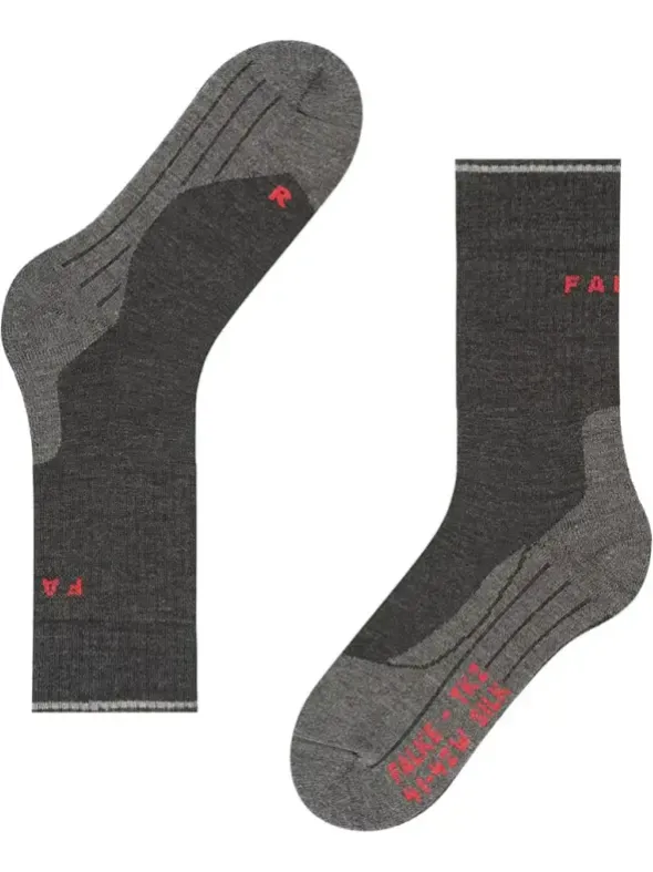 Die FALKE TK2 Explore Wool Wandersocken für Damen bieten mit ihrer mittelstarken Polsterung und dem Material-Mix aus Wolle und Seide einen luxuriösen, weichen Tragekomfort und sind besonders geeignet für Wanderungen in leichtem Gelände bei kaltem Wetter. Die feuchtigkeitsableitende 3-Lagen-Konstruktion sorgt dafür, dass die Füße trocken und blasenfrei bleiben, während die optimale Passform für eine perfekte Temperatur im Schuh und maximalen Komfort am Fuß sorgt. Der Material-Mix aus Seide und Merinowolle bietet nicht nur hochwertigen Tragekomfort, sondern auch eine ausgezeichnete Wärmeisolation und Frische. Mit der mittleren Polsterung werden die Belastungszonen geschützt, sodass auch längere Wanderungen komfortabel bleiben. Diese Wandersocke ist perfekt für Damen, die Wert auf Funktionalität, Komfort und Luxus bei ihren Outdoor-Aktivitäten legen. Die FALKE TK2 Explore Wool Socken sind die ideale Wahl für Wanderungen im Mittelgebirge und bei kaltem Wetter.