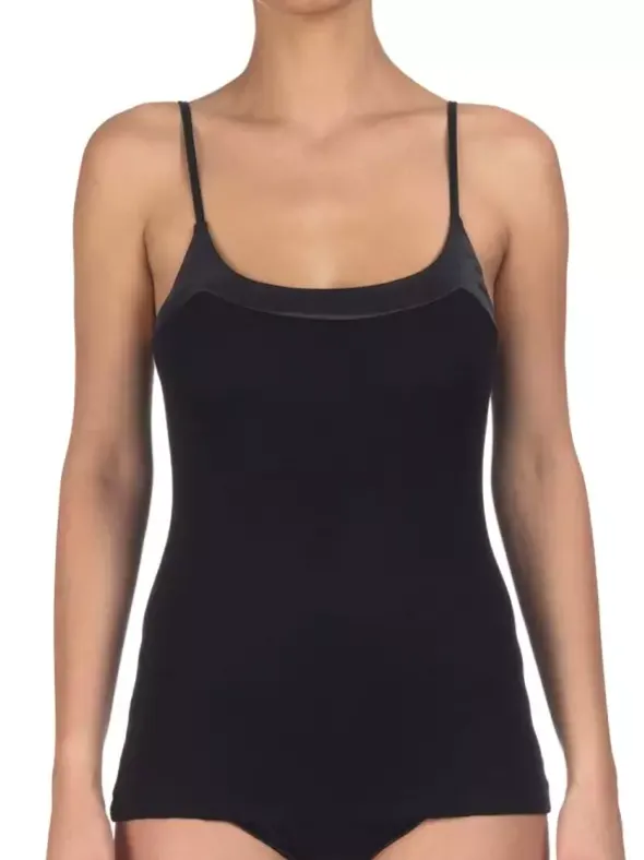 Ein Spaghetti Top, wahlweise in creme oder schwarz in perfekter Passform, aus der Serie Wool & Silk der Luxusmarke Oscalito – Unterwäsche für Damen. Feine, zarte Optik, und schlichte Eleganz vereinen sich zu purem Luxus auf der Haut. Feinste Wolle und Seide, verarbeitet zu einem glatten Gewebe verleiht dem Kleidungsstück einen weichen Griff. Ein Top mit geradem Ausschnitt mit Satineinsatz welches höchsten Ansprüchen an Bequemlichkeit gerecht wird.