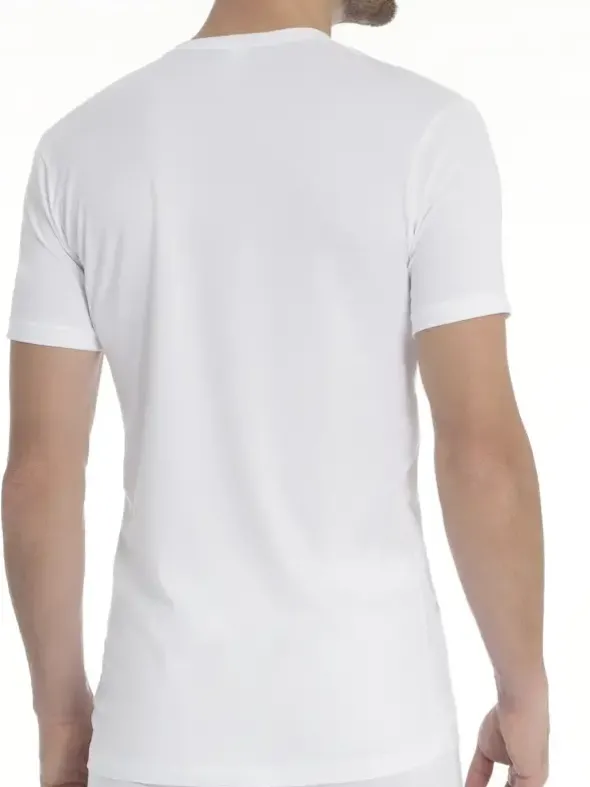 CALIDA Evolution – die Herren Tagwäsche Serie – hier ein T-Shirt mit kurzem Arm und rundem Ausschnitt, wahlweise in weiß oder schwarz. Das Unterhemd ist aus feiner PIMA Baumwolle mit geringem Elasthananteil und in Single Jersey Quälität gefertigt.
