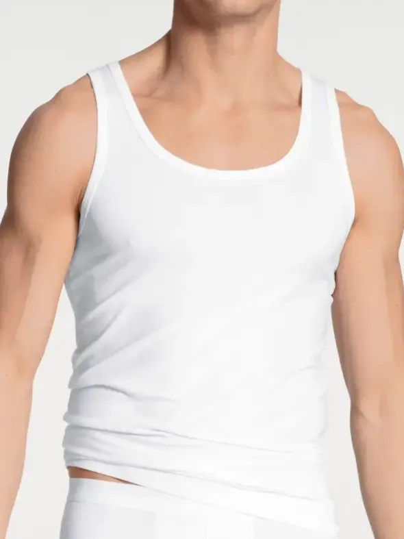 Das sportliche Athletic-Shirt im Doppelpack der Basic-Serie Natural Benefit von CALIDA ist aus hochwertigem Single Jersey gefertigt. Durch die hervorragende Produktqualität ist das Unterhemd sehr leicht und anschmiegsam und auch unter Business-Hemden oder Shirts gut zu tragen.