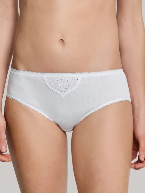 Schiesser Damenunterwäsche Serie Cotton Essentials. Hier ein klassisch geschnittener Tai Slip mit Stickereiapplikation sowie aus einer feinen Baumwolle in Feinripp Gewebe in akkurater Verarbeitung für angenehmen Tragekomfort. Das ideale Wäsche Basic für alle Tage.