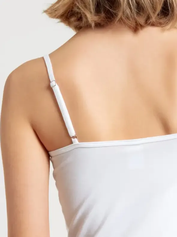 Das Spaghetti-Top im Doppelpack aus der Serie BENEFIT WOMEN von CALIDA bietet natürlichen Tragekomfort und schlichte Eleganz. Hergestellt aus hochwertiger Baumwolle mit Elasthan, sorgt es für ein angenehmes Hautgefühl und eine lange Haltbarkeit. Die elastische und langlebige Single Jersey-Qualität sowie die langanhaltende Farbbrillanz machen dieses Unterhemd zur perfekten Wahl für den täglichen Gebrauch.