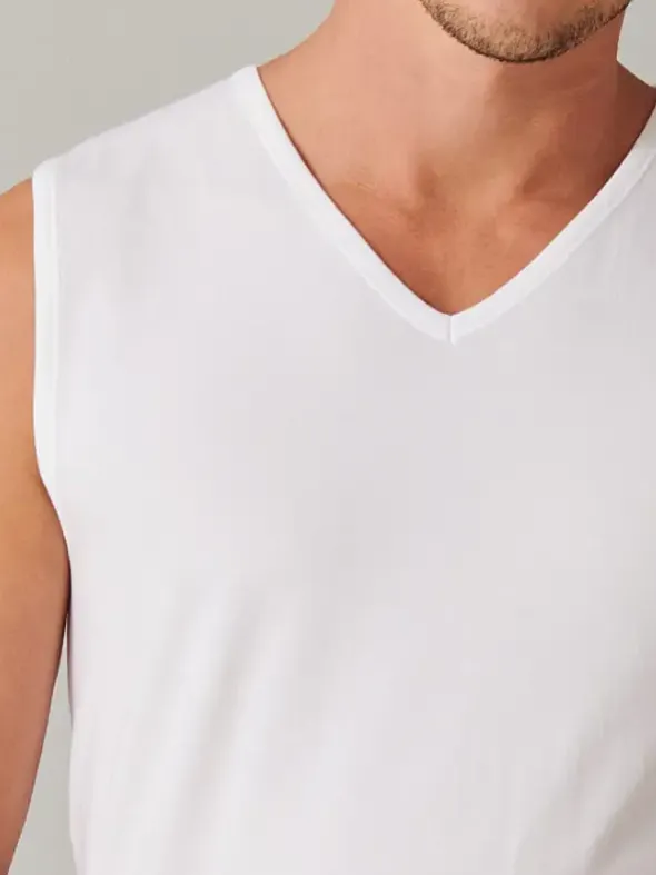 Im preisstarken Doppelpack sind diese Herren-Tank-Tops ein unschlagbares Duo. Das Material aus 95% natürlichem Organic Cotton und 5% Elastan begeistert mit einem erstklassigen Tragekomfort und fühlt sich dabei besonders angenehm auf der Haut an. Dank des praktischen, tiefen V-Ausschnittes lassen sich die Unterhemden auch problemlos unter dem Business-Hemd tragen. Kurz gesagt: Ein praktisches Multipack in gewohnt bester SCHIESSER-Qualität.
