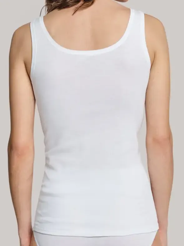 Aus der Schiesser Damenunterwäsche Serie Cotton Essentials ein sehr bequemes und schlichtes Tank Top mit schönem Ausschnitt mit Stickerei und mit perfekter Passform. Die feine Baumwolle in Feinripp Qualität sorgt für angenehmes Tragegefühl. Die Basiswäsche Serie für jeden Tag