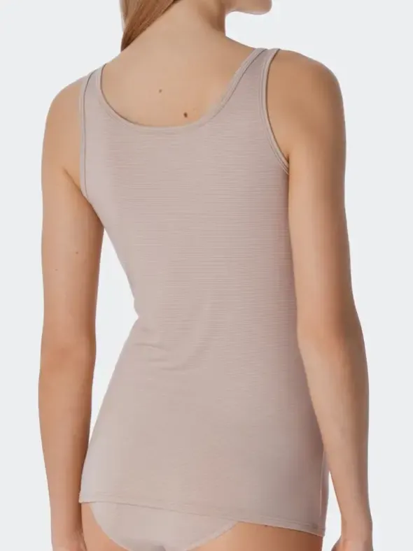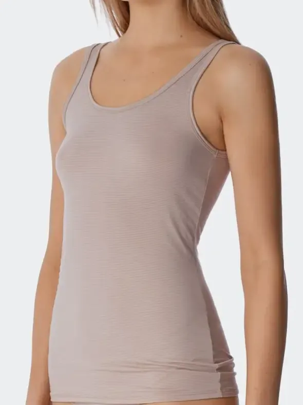 Aus der Schiesser Damenlingerie Modal Essentials, ein Tank Top für ein unglaubliches Hautgefühl. Das Top besteht aus einer wertvollen Mischung aus hohem Anteil von Modal mit Polyester und geringem Elasthananteil. Dieser hochwertige Single Jersey glänzt durch Formstabilität und einem unvergleich zartem Gefühl auf der Haut. Kombinieren Sie das passende Unterteil aus der neuen Serie Modal Essentials dazu.