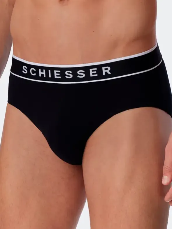 Wäsche-Trio in Topform: Diese Rio-Slips aus der beliebten Serie „95/5“ sind genau das Richtige für Herren, die erstklassige Tagwäsche hautnah erleben möchten. Der komfortable Webgummibund punktet nicht nur mit jeder Menge Tragekomfort, sondern verleiht den Unterhosen mit auffallender Logo-Prägung einen extra sportlichen Look. Für Bequemlichkeit sorgt das hautfreundliche Material aus 95% natürlichem Organic Cotton und 5% Elastan. Preisstark in bester SCHIESSER-Qualität!