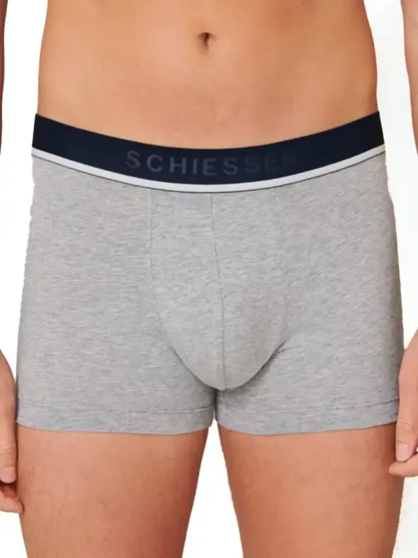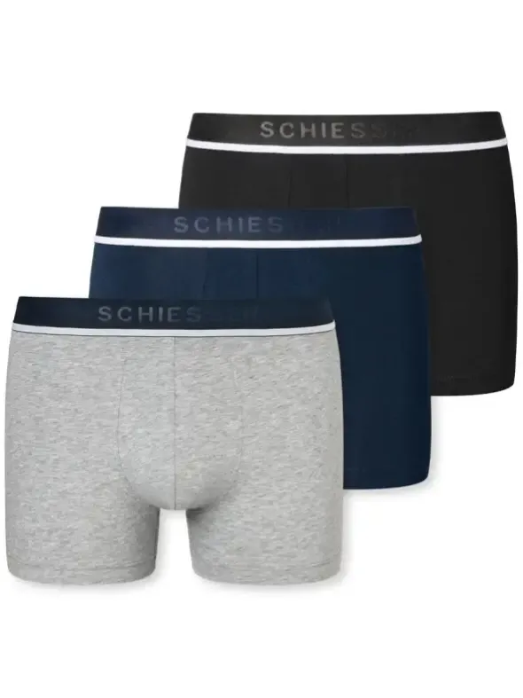 Sportlich schick im preisstarken Dreierpack! Diese modischen Herren-Shorts in Schwarz und Grau aus der beliebten „95/5“-Serie stehen für erstklassigen Tragekomfort. Mit ihrem schwarzen Logo-Webgummibund sitzen die Pants jederzeit perfekt am Körper. Das elastische Single Jersey-Material aus 95% natürlichem Organic Cotton und 5% Elastan fühlt sich besonders angenehm auf der Haut an. Eine rundum bequeme Tagwäsche für alle, die auf bewährt beste SCHIESSER-Qualität setzen!
