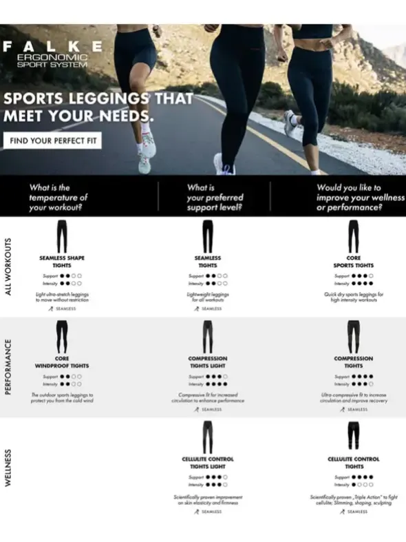 Die FALKE Cellulite Control 7/8-Leggings für Damen wurde entwickelt, um Cellulite zu bekämpfen und gleichzeitig die Beine zu formen. Das innovative Triple-Action-System der Leggings wirkt dreifach: Durch die 3D-Strickstruktur auf der Innenseite wird eine sanfte Mikromassage erzeugt, die durch Bewegung verstärkt wird. Die äußere Schicht übt sanften Druck aus, um die Lymphknoten in der Leiste zu massieren und die Durchblutung zu fördern. Das ergonomische Druckverteilungssystem verbessert den Sauerstofftransport und sorgt für mehr Energie und Leichtigkeit. Studien zeigen, dass das FALKE Cellulite Control System die Hautelastizität verbessert und die Fettablagerungen in den Beinen reduziert. Tragen Sie die Leggings regelmäßig beim Sport und kombinieren Sie sie mit weiteren Produkten der Cellulite Control Serie, um optimale Ergebnisse zu erzielen.
