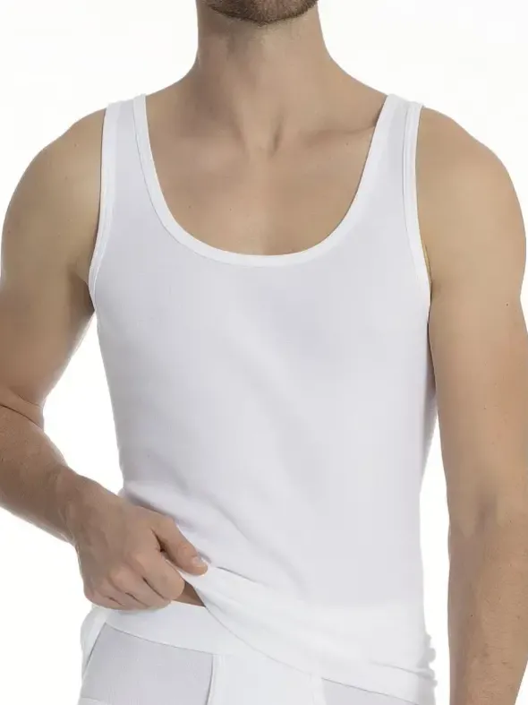 CALIDA Cotton 1:1 – die Herren Tagwäsche Serie – hier ein Athletic Shirt im Frackschnitt in der Farbe weiß. Das Unterhemd ist aus einer feinen Baumwolle sowie in Feinripp 1:1 Quälität gefertigt.