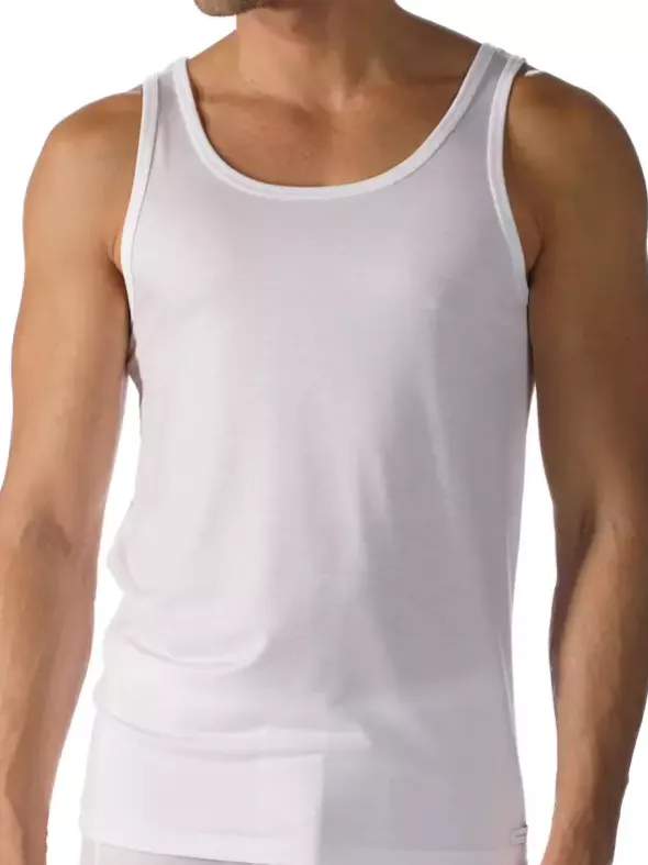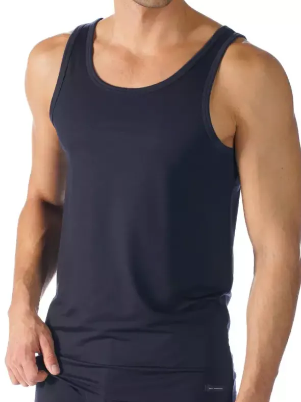 Mey Herren Tank Top – Network. Verwöhnen Sie sich mit diesem Wäschestück mit Rundhals-Ausschnitt. Das Tank Top, wahlweise erhältlich in weiß, dunkelblau oder schwarz, wird aus einer feinen Mikrofaser aus Lyocell (Tencel) mit geringem Elasthananteil (Lycra) in Single Jersey Gewebe gefertigt und ist besonders weich. Die Software Serie trägt das „Bluesign Product“ Label für besondere Nachhaltigkeit im gesamten Fertigungsprozess.