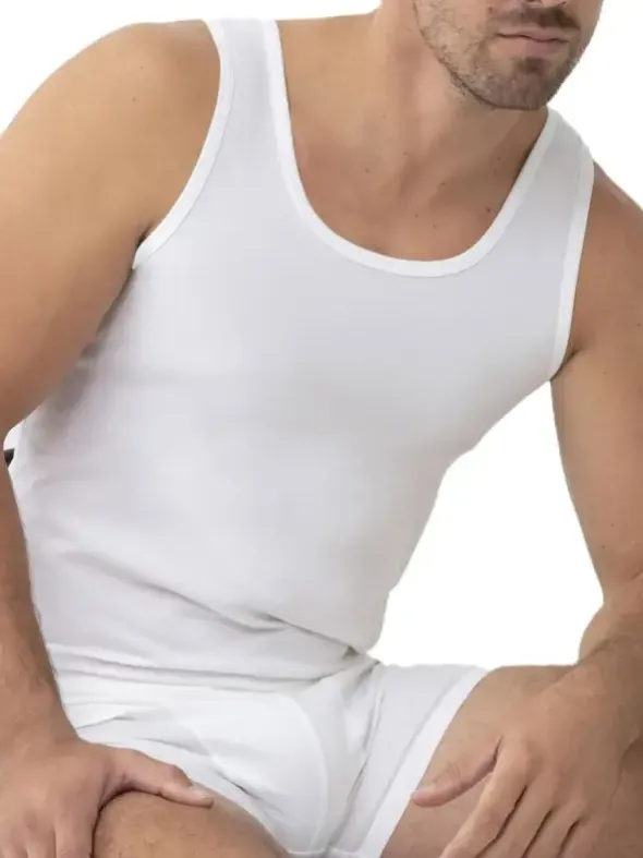 Bequemes Athletic-Shirt aus der nachhaltigen Kollektion RE:THINK von mey. Alle Wäschestücke der Serie sind in Europa produziert und GOTS-zertifiziert. Der weiche Single-Jersey aus Bio-Baumwolle und Elasthan liegt dank einem körpernahem Schnitt angenehm auf der Haut. Ein wunderbares Basic für den anspruchsvollen Mann.