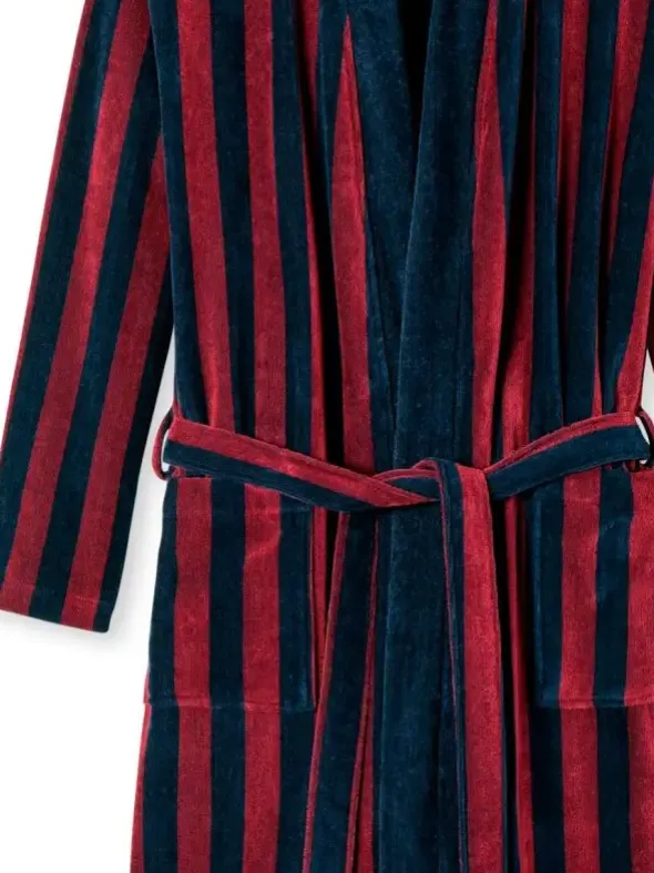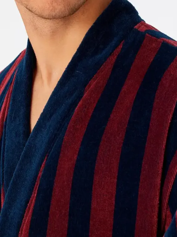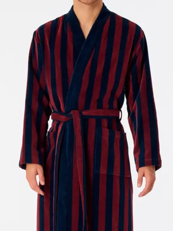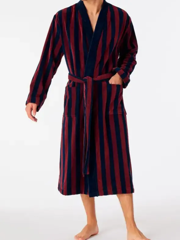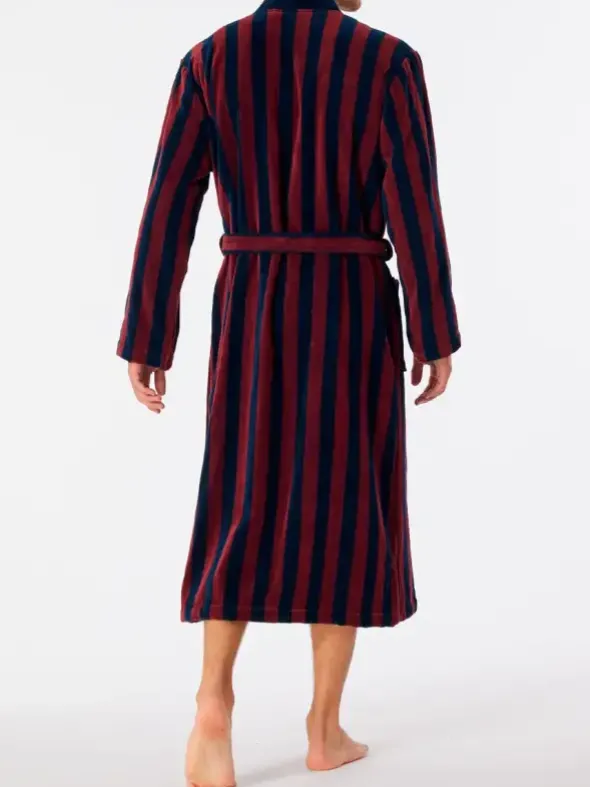 Dieser gestreifte Herren-Bademantel verwöhnt Sie mit behaglichem Material und zeitlos-maskulinem Design. Wärmender Velours aus 100% feinster Baumwolle sorgt hierbei für höchsten Tragekomfort. Die zweifarbigen Streifen unterstreichen den eleganten Look des Mantels. Genau der richtige Begleiter für schöne Wohlfühlstunden daheim – natürlich in bester SCHIESSER-Qualität!