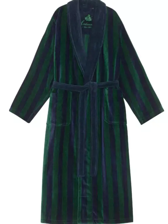 Der stilvolle Bademantel Helsinki verspricht zugleich Komfort und höchste Qualität. Klassisch geschnitten mit Schalkragen, Bindegürtel und großen Eingrifftaschen, ist der Mantel ein perfekter Begleiter für Ihre Freizeit und auch auf Reisen. Das weiche, doppelt gearbeitete Material ist umweltbewusst in Europa gefertigt und besteht aus reiner, GOTS-zertifizierten Bio-Baumwolle. Außen besticht ein weicher Jaquard-Velour mit seiner seidig-weichen Haptik. Auf der Innenseite sorgt die French-Terry-Qualität für eine optimale Feuchtigkeitsaufnahme.