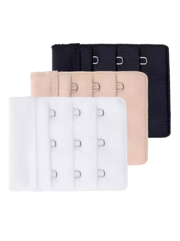 Mit dieser praktischen BH-Verlängerung erweitern Sie den Umfang Ihres BH´s in drei Verlängerungsstufen (2,5cm – 7,5cm). DieVerlängerung läßt sich ganz einfach in den BH einhaken und sorgt durch seine elastiche und weiche Fertigung für einen hohen Tragekomfort. Das Set besteht aus je einer Verlängerung in den drei Basisfarben weiß, skin und schwarz. Passend für Verschlüsse mit 30mm Höhe.
