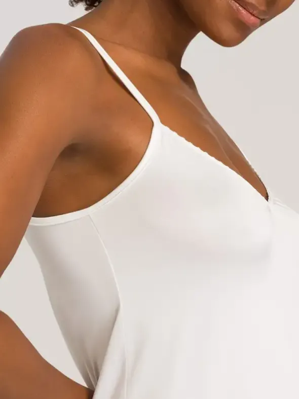 Das knielange Bodydress aus der HANRO Serie Satin Deluxe besteht aus luxuriösem, weich fließendem Viskose-Satin und bietet ein unglaublich leichtes Tragegefühl. Der zarte Picot-Besatz am V-Ausschnitt und Rückenteil verleiht dem eleganten Unterkleid eine modische Note. Verstellbare Träger sorgen für eine perfekte Passform. Dieser Artikel und die dafür verwendeten Stoffe werden in Europa hergestellt und sind nur zeitlich begrenzt verfügbar.