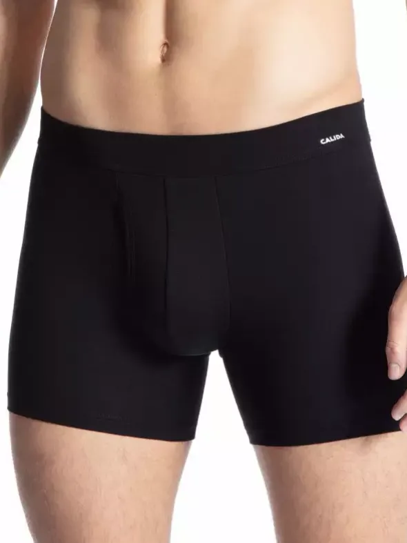 CALIDA Cotton Code Serie – hier eine Herren Boxerpant mit Eingriff aus weicher, reiner Baumwolle in Single Jersey Qualität. Flache Abschlüsse und ein Komfortbund sorgen für angenehme Trageeigenschaften. Der Herrenboxer ist wahlweise in weiß oder schwarz erhältlich.