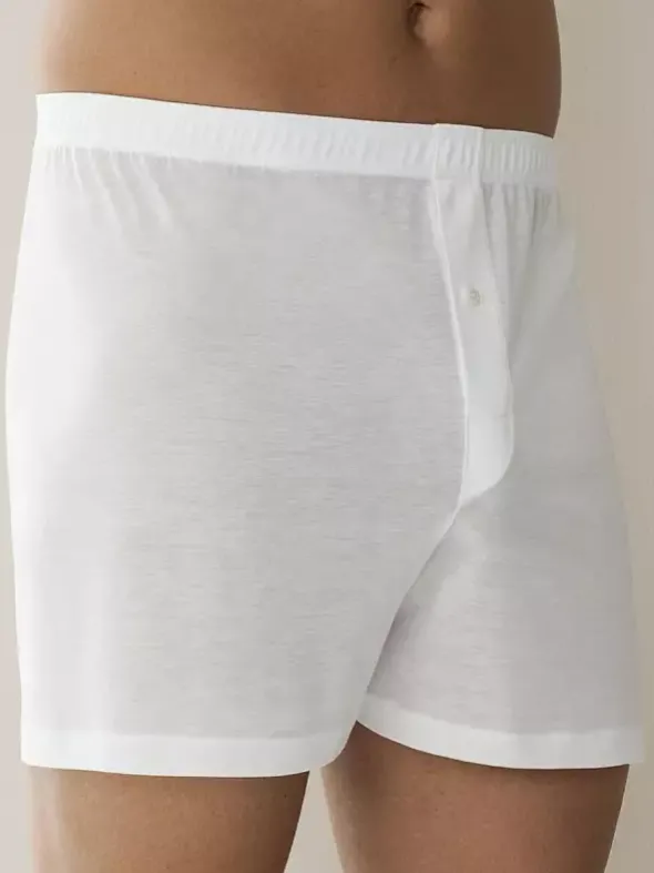 Zimmerli Herren Boxer Short aus der Serie 252 Royal Classic – ein Luxus Boxershort der Extraklasse in weiß, gefertigt in Single Jersey aus feinster Baumwolle in Swiss Cotton Qualität, gezwirnt und mercerisiert. Die Royal Classic Unterwäsche wird im Rundstrickverfahren hergestellt und ist dadurch hochelastisch.. Die Einfaßbänder sind hauchdünn aus dem gleichen und spiralförmig zugeschnittenem Material, was eine exzellente Passform gewährleistet. Flache Nähte und sehr angenehmer Bund. Schweizer Handarbeit – akkurat verarbeitet. Verwöhnen Sie sich mit diesem Herrenboxershort, der höchsten Ansprüchen gerecht wird.