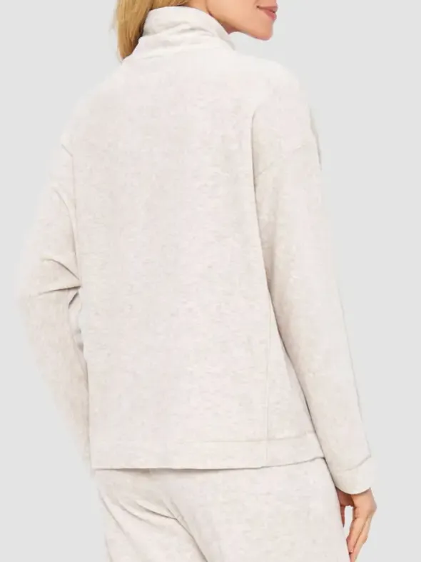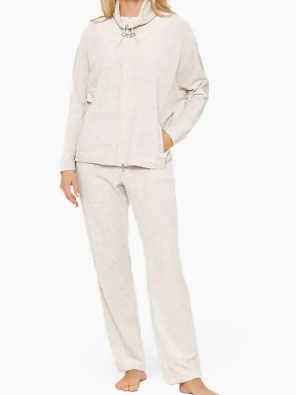 Gönnen Sie sich diesen gemütlichen Hausanzug aus wunderbar weichem Nicki-Stoff für pure Gemütlichkeit. Die Jacke besticht mit einem edlen Metallzipper, der kurze Stehkragen erhält durch ein dezentes Zugband einen modernen Touch. Für praktischen Komfort ist die Hose mit zwei Eingrifftaschen ausgestattet. Ein wunderbarer Look zum Relaxen und Loungen.