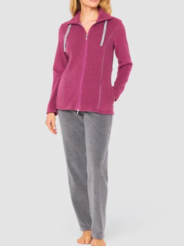 Der Rösch Hausanzug bietet eine perfekte Mischung aus Komfort und Eleganz, ideal für entspannte Tage zu Hause. Der hochwertige Fleece-Mix aus 70% Polyester und 30% Viskose sorgt für eine ultraweiche, wärmende Haptik und ein angenehmes Tragegefühl. Durch die zusätzliche Ziernaht wird die Passform optimiert, während der edle Zipper und der Stehkragen der Jacke stilvolle Akzente setzen. Sowohl die Jacke als auch die Hose sind mit praktischen Taschen ausgestattet, und der breite Komfortbund garantiert einen bequemen Sitz. Das kontrastfarbene Design von Jacke und Hose verleiht dem Hausanzug eine moderne und zugleich elegante Optik.