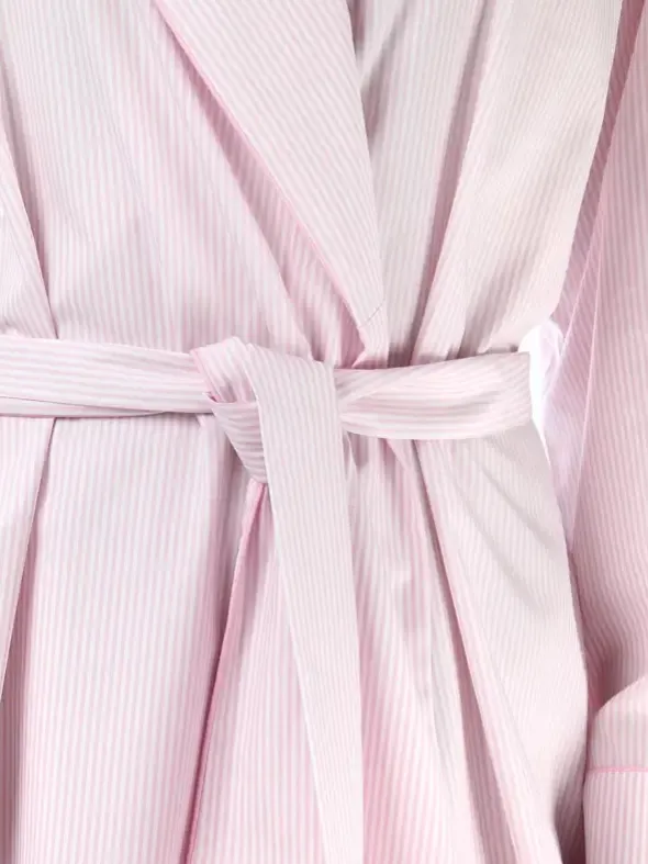 Dieser leichte Morgenmantel der Bonsoir of London Kollektion macht Sie im Nu bereit für einen gemütlichen Start in den Tag. Der Morgenmantel ist ungefüttert und wurde mit viel Sorgfalt aus einer hochwertigen Baumwoll-Popeline gefertigt. Das feine Streifendesign unterstreicht perfekt die klassische Schnittführung mit elegantem Schalkragen. Zwei unsichtbar eingesetzte Eingrifftaschen runden den Morgenmantel praktisch ab. Mithilfe eines Gürtels und zweier innenliegender Fixierbänder läßt sich der Mantel bequem schließen.