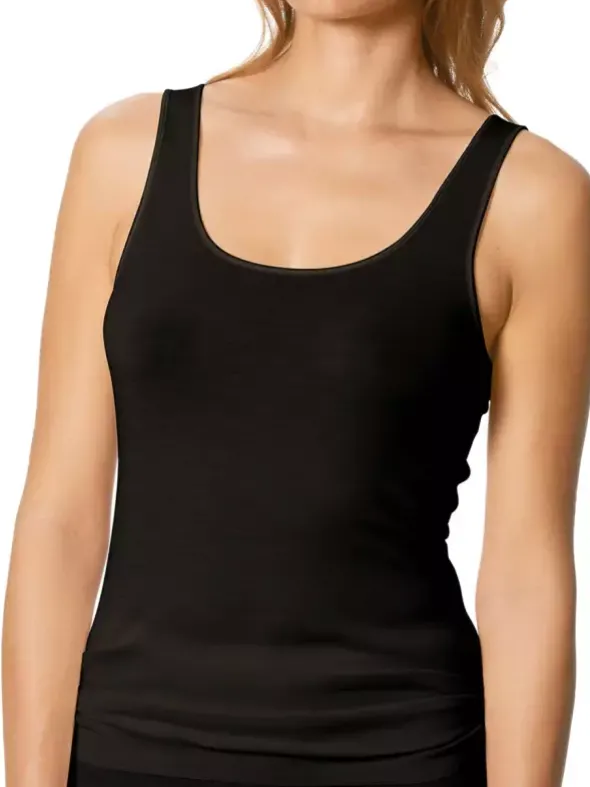 Mey Exquisite – die luxuriöse Warmwear Lingerie Serie – hier ein bequemes und hochwertiges Tank Top in klassischer Ausführung und in perfekter Passform wahlweise in creme oder schwarz erhältlich. Das Top ist mit breiten Trägern und flachen Abschluss sowie aus sehr leichtem Material gefertigt. Das weiche Gewebe aus feiner Merinowolle und Seide sorgt für perfektes Hautklima und behaglichen Tragekomfort.