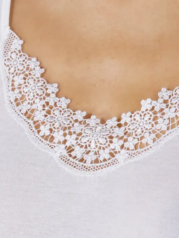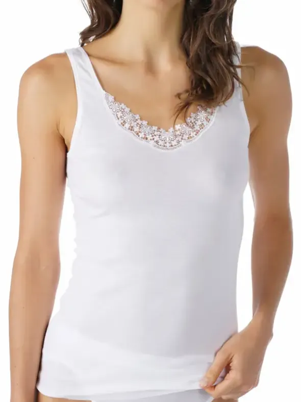 Das Tank-Top aus der Serie Noblesse ist ein absolutes Wardrobe-Essential, das durch seine hochwertige Verarbeitung und durchdachte Details überzeugt. In der klassischen Farbe Weiß gehalten, kombiniert es femininen Stil mit zeitlosem Design und wird so zu einem unverzichtbaren Begleiter für jeden Tag. Die perfekte Materialmischung aus 100% supergekämmter, langstapeliger PIMA Baumwolle aus Peru sorgt für ein unglaublich weiches, natürliches Tragegefühl und hohe Formstabilität. Der tiefe V-Ausschnitt mit edler Spitze und die breiten Träger verleihen dem Top eine elegante Note, während der Verzicht auf auftragende Seitennähte für zusätzlichen Tragekomfort sorgt. Zertifiziert nach Oeko-Tex-Standard 100 erfüllt das Top höchste Ansprüche an Qualität und Nachhaltigkeit. Dieses vielseitige Basic verbindet Funktionalität mit Stil und wird garantiert zu einem Ihrer Favoriten.