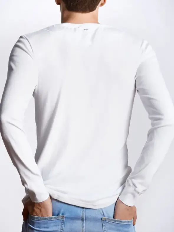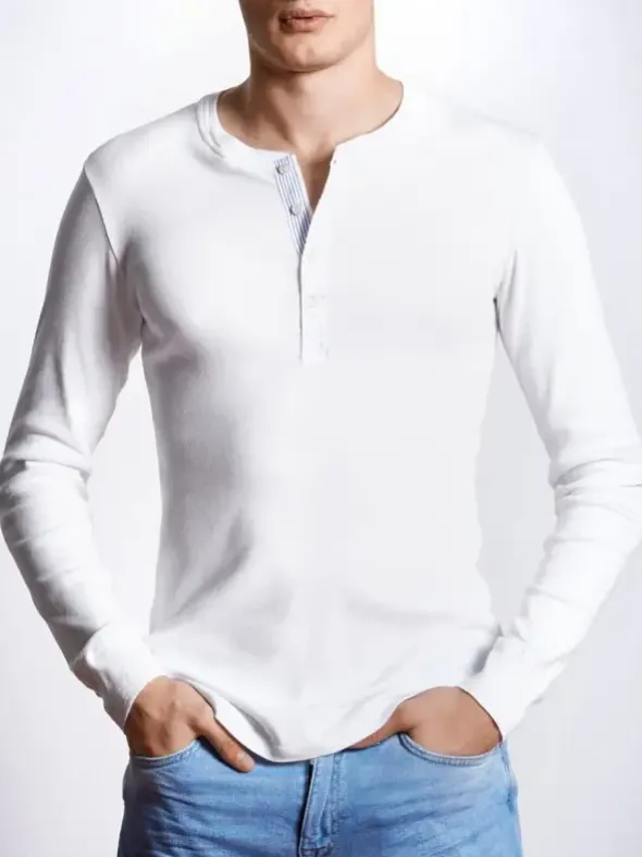 Ich bin´s, Karl-Heinz. Du kennst mich bestimmt schon, ich bin der Kultklassiker von 1923, verkörpere beste Handwerkskunst und feinste Qualität im zeitgemäßen Look. Mit mir entscheidest du dich für ein Langarmshirt aus stückgefärbtem Feinripp, aus 100% supergekämmtem Organic Cotton. Akzente setzen meine blauen Streifen, Perlmuttknöpfe und die traditionellen Flachränder als Armabschlüsse. Du siehst also: Ich bin nicht irgendwer, ich bin das Original unter den Originalen.