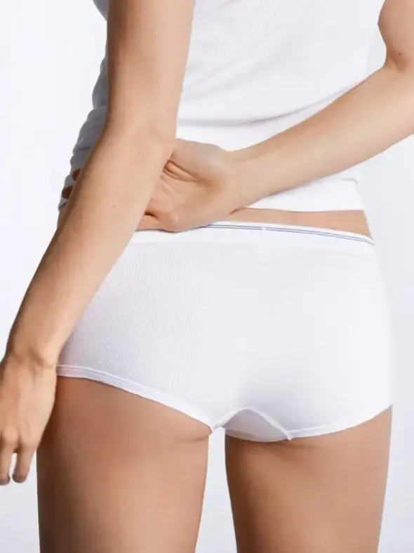 Die Schiesser Revival Serie beeindruckt mit den Micro Pants Greta, die aus hochwertiger, 2-fädiger Supima-Baumwolle gefertigt sind. Geboren 1951, heute neu interpretiert: in einer modernen Schnittform mit Webgummibund mit kontrastfarbigem Zierstreifen und mit gewebtem Schiesser-Logo. Dank angenehmem Elasthananteil liegen die Doppelripp-Micro Pants perfekt auf der Haut. Ein ausgezeichneter Tragekomfort ist die Folge.