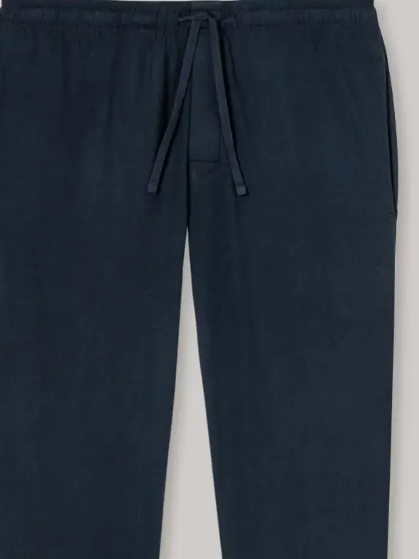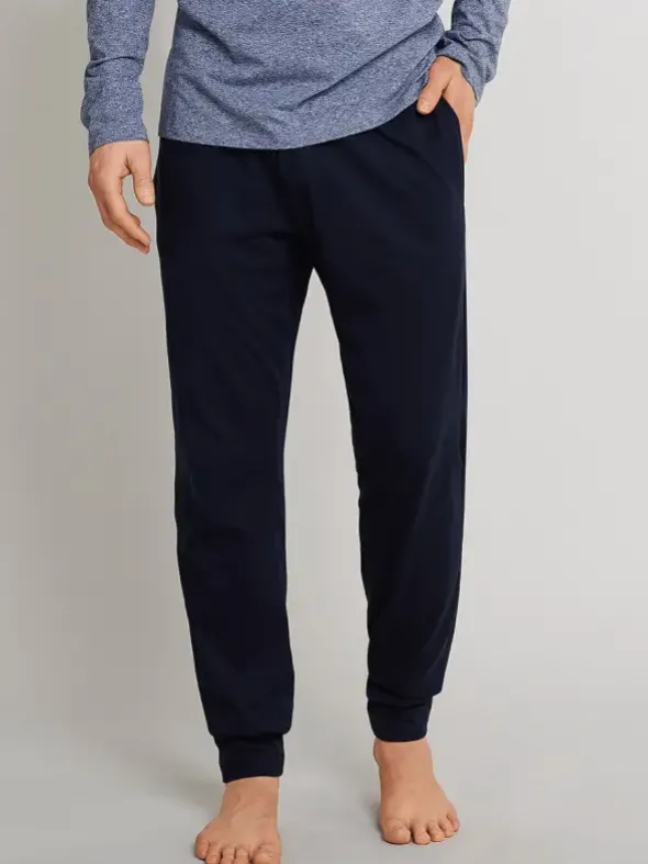 Schiesser Mix & Relax Herren Homewear – hier eine lange Hose mit Seitentaschen, engen Abschlussbündchen an den Beinen und bequemen Kordelbund in modischem dunkelblau. 100% Baumwolle zu weichem Single Jersey gearbeitet, sorgt für ein perfektes Tragegefühl. Die klassische Homewear von Schiesser ist der ideale Begleiter für den Tag und läßt keine Wünsche offen.