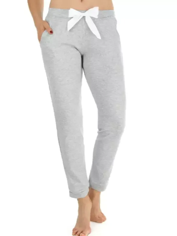 Eine legere Homewear Hose von NOVILA in sportlichem Grau, welche durch das edle Satin-Bindeband optisch zum Hingucker wird. Der bequeme und hautschmeichelnde Interlock-Jersey sorgt für maximalen Komfort und Bewegungsfreiheit. Der elastische Bund und die Seitentaschen machen diese Hose zu einem wunderbaren Freizeitbegleiter. Dazu im Shop erhältlich: das Langarmshirt Mara im passenden Design.