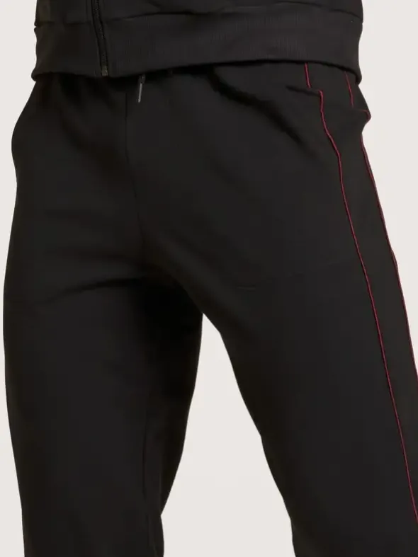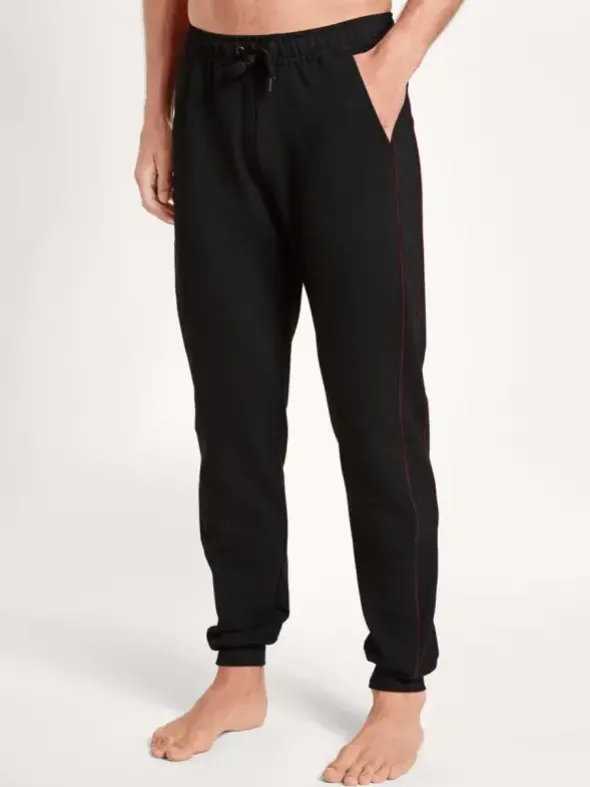 Die Remix Basic Lounge Hose von CALIDA bietet optimalen Komfort und Stil für entspannte Stunden. Hergestellt aus weichem French Terry, verfügt die Hose über Seitentaschen, eine aufgesetzte Gesäßtasche und einen elastischen Bund mit Tunnelzug. Farbige Paspelstreifen an der Seitennaht und weiche Bündchen an den Abschlüssen verleihen dieser Hose einen modernen Look und bieten vielseitige Mix&Match-Möglichkeiten.