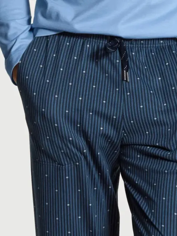 Pyjamahose aus der Serie REMIX BASIC von CALIDA aus reiner Baumwolle. Die bequeme Pants wurde aus reiner Baumwolle verarbeitet und lässt sich aufgrund ihres klassischen Designs perfekt zu den Shirts der Linie kombinieren.
