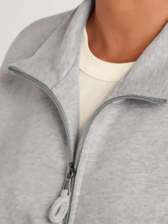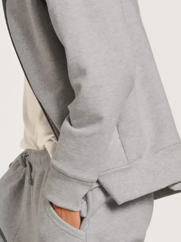 Die sportlich-stylische Jacke aus der Circular Lounge Serie von CALIDA überzeugt durch ihr modernes Design mit Stehkragen und durchgehendem Reißverschluss. Hergestellt aus 100% Bio-Baumwolle in hochwertiger French Terry Sweat-Qualität, bietet sie höchsten Tragekomfort. Die Jacke ist Cradle to Cradle Certified® SILVER und verfügt über elastische Bündchen, überschnittene Schultern und eine geteilte Kängurutasche.