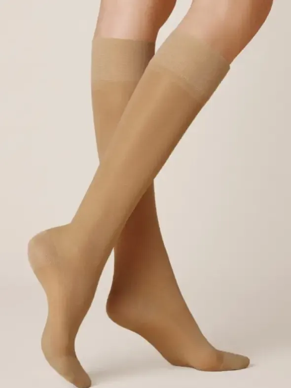 Gönnen Sie Ihren Beinen an Tagen mit langem Stehen oder Sitzen eine angenehme Entlastung mit diesen Kniestrümpfen der Stützklasse 3 aus geschmeidiger Mikrofaser. Perfekt um die Venenfunktion der Beine zu unterstützen und einer vorzeitigen Ermüdung vorzubeugen. Die matten Strümpfe sind mit einem stufenweisen Stützverlauf, einem bequemen Abschlussbund und einer verstärkten Fußspitze mit Maschenstopp gearbeitet und werden somit zum perfekten Begleiter im Büro, im Auto oder auf Flugreisen.
