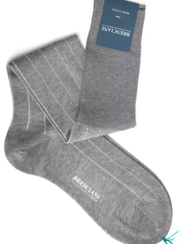 Stilvoller Komfort erwartet Sie mit diesem Kniestrumpf der Extraklasse. Das Modell Leone von Bresciani ist aus extrafeiner, äqyptischer Baumwolle gefertigt. Für ein noch luxuriöseres Hautgefühl wurde diese aufwendig merzerisiert. Die handgekettelte Spitze und das weiche, einfarbige Bündchen sorgen für eine perfekte Passform. Im 6er-Pack erhältlich.