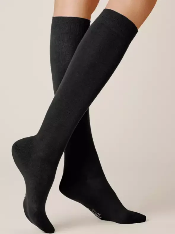Ein perfekter Begleiter für den Alltag erwartet Sie mit den hautsympathischen Kniestrümpfen Liz von Kunert. Die verwendete Baumwolle ist absolut weich und sorgt zusammen mit der handgekettelten Zehennaht und der partiellen Verstärkung in den Belastungszonen für eine ideale Passform. Ein druckfreier Komfortbund ohne einengende Gummifäden verspricht zusätzlichen Komfort.