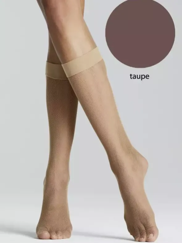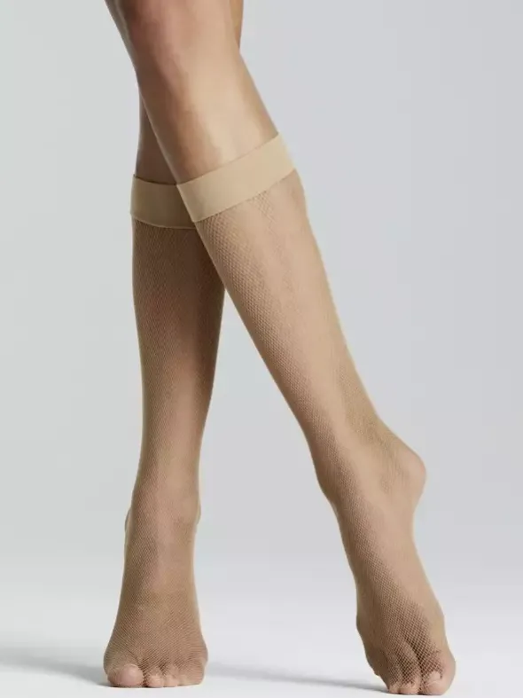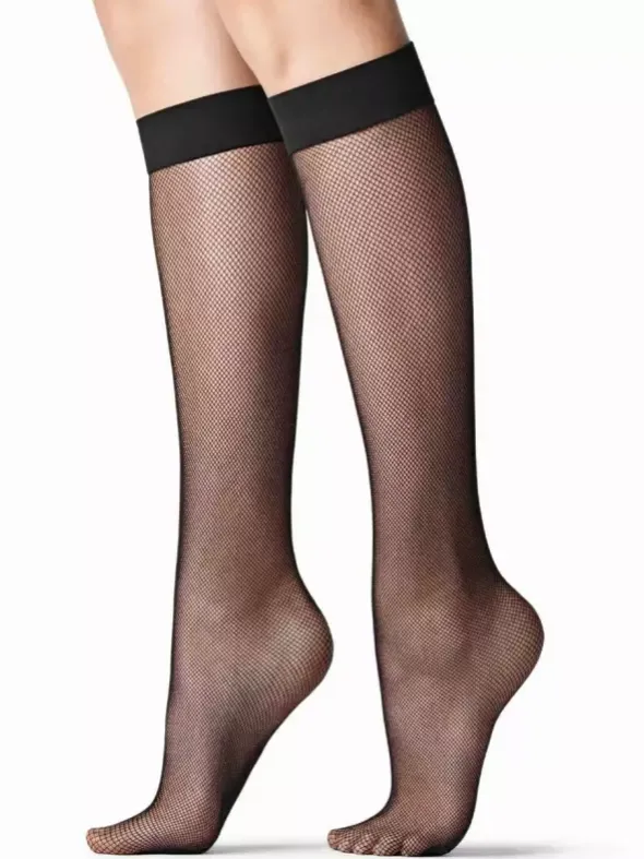 Von Fogal ein Damen Kniestrumpf aus der Serie 3058 Netlace. Der Kniestrumpf ist aus feinstem, elastischen Netz gearbeitet. Von Beginn, der zarten elastischen Bordüre am Bein bis zur Fussspitze, ist das Netz komplett durchgehend.