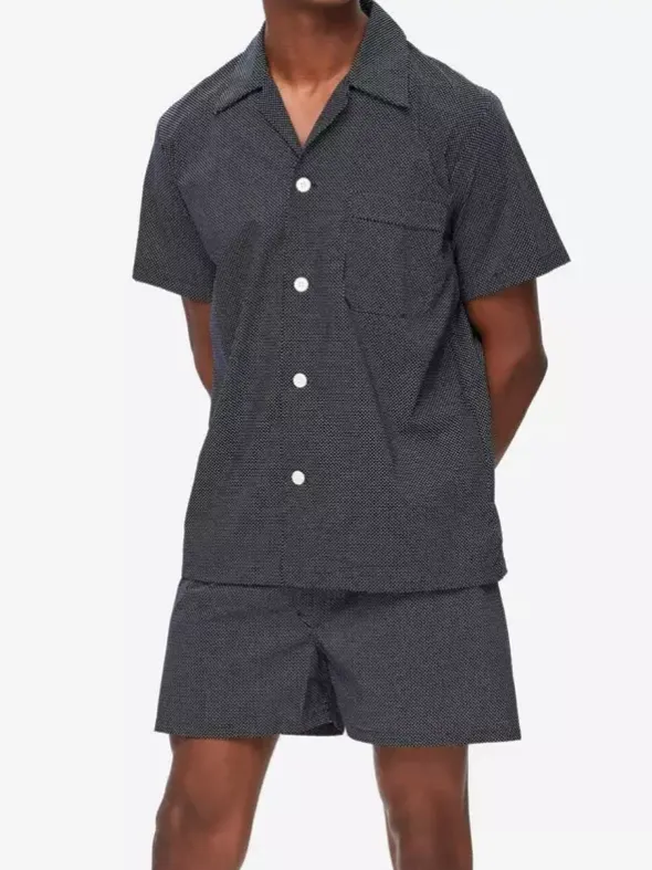Ein absoluter Favorit für den Sommer oder auch auf Reisen ist dieser Kurzpyjama aus ultrafeinem Baumwoll-Batist. Das leichte Gewebe bietet zusammen mit der entspannten Passform einen besonderen Tragekomfort. Er ist bei vielen Kunden ein Favorit für den Urlaub, da er nicht nur in wärmeren Klimazonen perfekt zu Tragen ist, sondern sich zudem auch noch leicht verpacken lässt. Klassische Elemente wie die Brusttasche oder der Hemdkragen sorgen für eine elegante Optik. Die lockere Hose ist mit einem verstellbaren Bund mit zwei Knöpfen und elastischen Seitenteilen gefertigt. Diese sorgen dafür, dass Vorder- und Rückseite angenehm flach aufliegen.