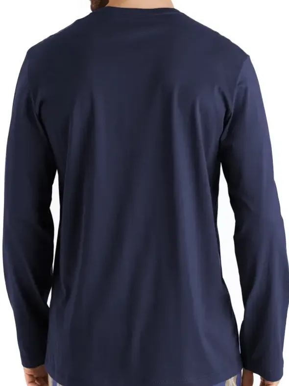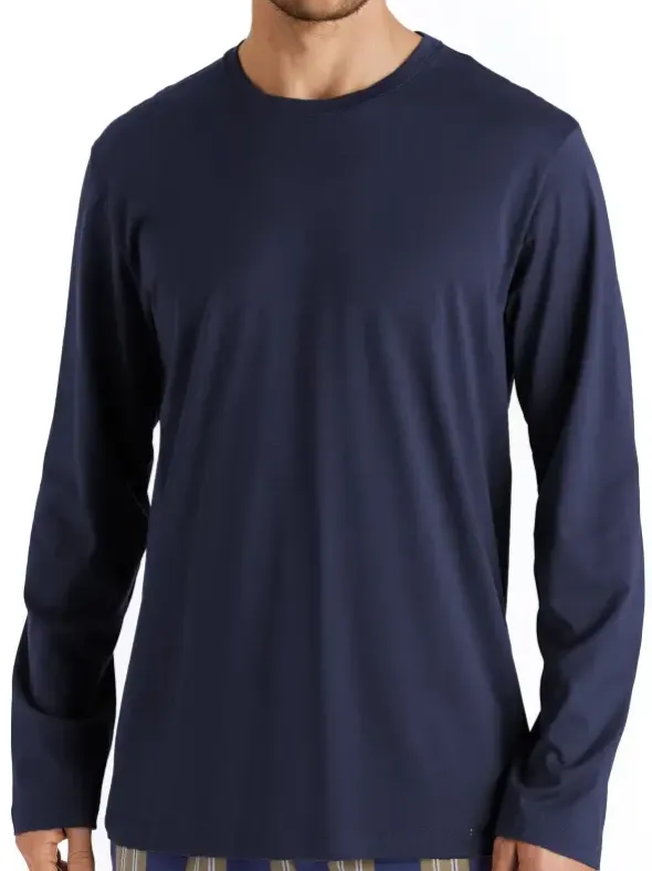 Zurückhaltendes HANRO Longsleeve Shirt aus der Serie Night & Day in anschmiegsamer Baumwolljersey-Qualität. Kombinieren Sie dieses Langarmshirt zu den passendem Hosen der Basic-Serie Night & Day. Perfekt für die Nacht oder den Tag.
