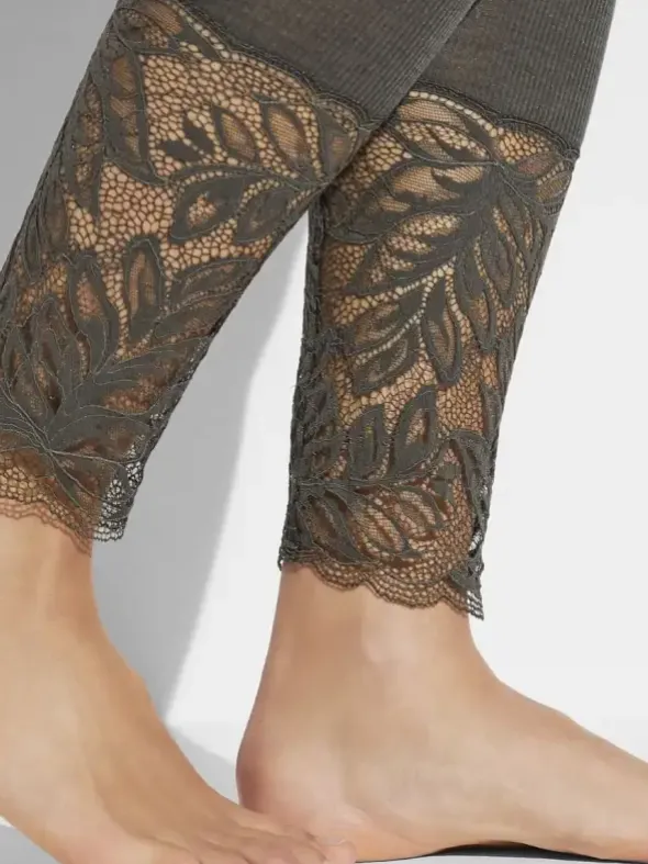 Diese Damenleggings aus der Serie Wool & Silk vereinen luxuriösen Komfort mit stilvollen Details. Sie verfügen über einen verdeckten elastischen Bund und einen integrierten Spickel, der für zusätzlichen Komfort sorgt. Die floralen Spitzenverzierungen an den Beinenden und die elegante 2×2 Rippe mit weicher Tüllstickerei verleihen den Leggings eine feminine Note. Diese herrlich wärmende Unterwäsche wird in der Schweiz handgefertigt und bietet ein unvergleichliches Trageerlebnis.