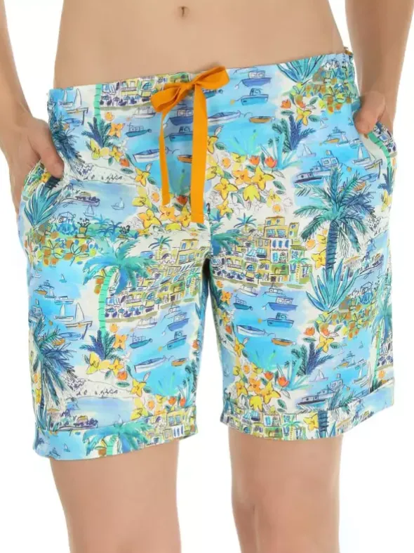 Die Bermuda Amalfi aus der Julia Rossi Refugio Kollektion wurde aus einem reinem Leinengewebe gefertigt und wird so zum idealen Begleiter für den Sommer. Der prächtige Print vereint Segelboote auf azurblauem Wasser, romantische Dörfer, Blumen und Palmen. Egal wo Sie die Shorts tragen – wir wünschen Ihnen viel Freud.