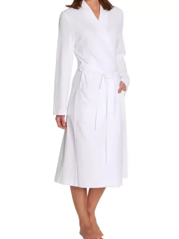Der elegante Morgenmantel von Rösch ist aus einem wunderbar strukturiertem Baumwoll-Piquée gefertigt und erzeugt dank der eleganten Schnittform eine feminine Silouette. Der breite Schalkragen und die großen Eingrifftaschen sind mit dekorativen Glanzziernähten versehen. Der Mantel ist circa 110cm lang.