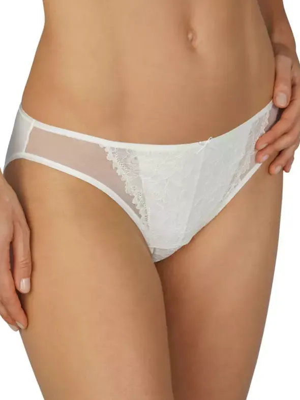 Aus der romantischen Dessous – Serie von Mey Serie Fabulous, früher Elisa – hier ein femininer Mini Slip in der femininen Farbe creme. Belohnen Sie sich mit einem Traum aus edlem Tüll. Neben femininer Gestaltung aus Tüll und einer dekorativen Zierschleifen im vorderen Bereich, besticht dieser Slip durch hochwertige Verarbeitung und weiches Material. Belohnen Sie sich mit einem tollen Tragegefühl von Mey.