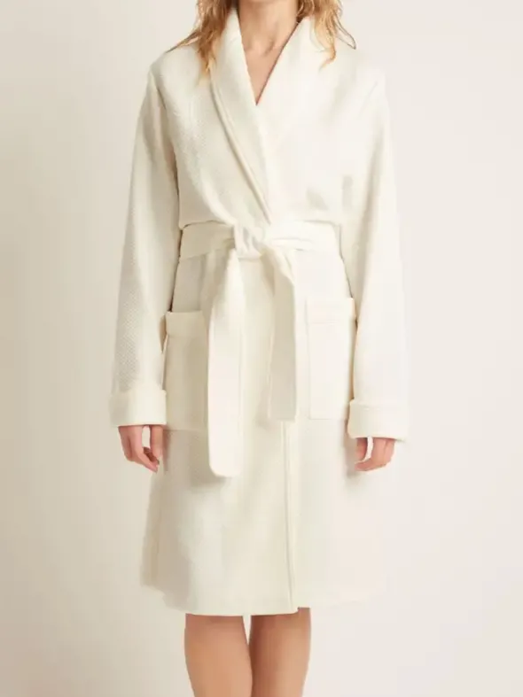 Der PLUTO Morgenmantel SOFIA vereint zeitlose Eleganz und modernen Komfort in einem einzigartigen Design. Hergestellt aus hochwertiger, fließender Steppware, bietet er eine angenehm weiche und leichte Wärme, ideal für entspannte Stunden zu Hause. Der elastische Matelassé-Stoff mit feiner Kreuzsteppung sowie die Materialien Modal und Baumwolle sorgen für pures Wohlbefinden. Mit seinem stilvollen Schalkragen, dem praktischen Bindegürtel und den aufgesetzten Taschen ist der Morgenmantel nicht nur funktional, sondern auch ein echter Hingucker. Die breiten Ärmelumschläge und die perfekte Passform runden den Look ab. Ein Must-Have für Damen, die sowohl Stil als auch Gemütlichkeit schätzen.