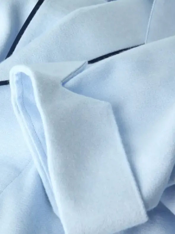 Der elegante, ungefütterte Hausmantel Lord – hier in einer wärmenden Ausführung aus beidseitig gerauhtem Vollzwirn-Flanell. Das Gewebe aus hochwertiger Baumwolle ist wunderbar hautschmeichelnd und macht diese 112cm Robe zu einem treuen Begleiter durch die kältere Jahreszeit. Der komfortable Schnitt mit praktischem Bindegürtel und aufgesetzten Taschen wird edel ergänzt durch einen klassischen Schalkragen und kontrastfarbene Paspelierungen. Verwöhnen Sie sich mit purem Luxus in bester Verarbeitungsqualität.